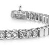 A bold look defines this bracelet. This two-toned beauty features groups of 5 channel set diamonds; each framed with a double cushion connector. Welcome this eye-catching bracelet into your jewelry collection today.