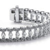 Circles are one of the hottest design trends today. So what happens when you take that new, hot look, and dip it in history . this bracelet! Lovely, round, prong set diamonds are each set inside a fabulous circle featuring milgrain edging and incredible detail. Make this piece in either gold or platinum, and in any of the 11 available sizes. With this bracelet, we really run circles around the competition!