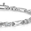Circles, Squares, Diamonds, and even two-tone gold or platinum . this bracelet has A LOT going on! Lovely round, prong set diamond are prong set in ‘track’ links, and separated by three diamonds, each carefully surrounded in its own circle setting. It just doesn’t get more unique and interesting than this! With 2 carats total diamond weight, this is truly a gem of a bracelet!