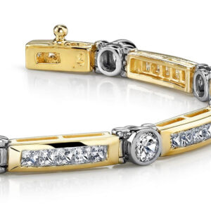 This bracelet is completely ‘unexpected’ . but the reaction she gives you when she opens the box, won’t be! Five channel set, princess-cut diamonds are surrounded in their own fabulous gold or platinum ‘frames’, which are linked together by beautiful bezel-set round diamonds.