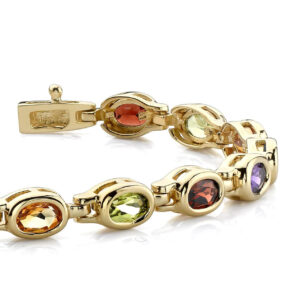 This amazing gemstone bracelet features natural colored stones that are set with an ‘Under Prong’ setting, which looks like a bezel set. Each fabulous, gold or platinum encircled stone is linked with a unique, moving link. Available in 4 different combinations, you’ll definitely be able to add a little color to your wardrobe, without adding much to your budget!