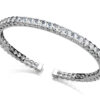There aren’t many styles hotter than the ‘bangle’. This one is perfect . truly a timeless piece. It is customizable in 4 different sizes, and features round diamonds in prong settings. Create your own version . by choosing white gold, yellow gold or platinum, and then by selecting total diamond weights ranging from 1 to 3 carats! This is the perfect accessory . and features a very sturdy and reliable clasp. This oval shaped bangle will give the wearer many years of pleasure! All our bangles are 7 inches in length.