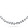 Here’s one of those pieces that truly makes heads turn! Featuring between 77 and 109 gleaming diamonds, and total diamond weights ranging from 5 carats to 15 carats, you WILL take her breath away with this one! Crafted in your choice of gold or platinum, the diamonds in this piece are graduated in size, starting at the clasp, and increasing until they reach the centre. This necklace will take any cocktail dress or evening gown and truly turn it into the outfit everyone will be talking about! Talk about icing on the cake!
