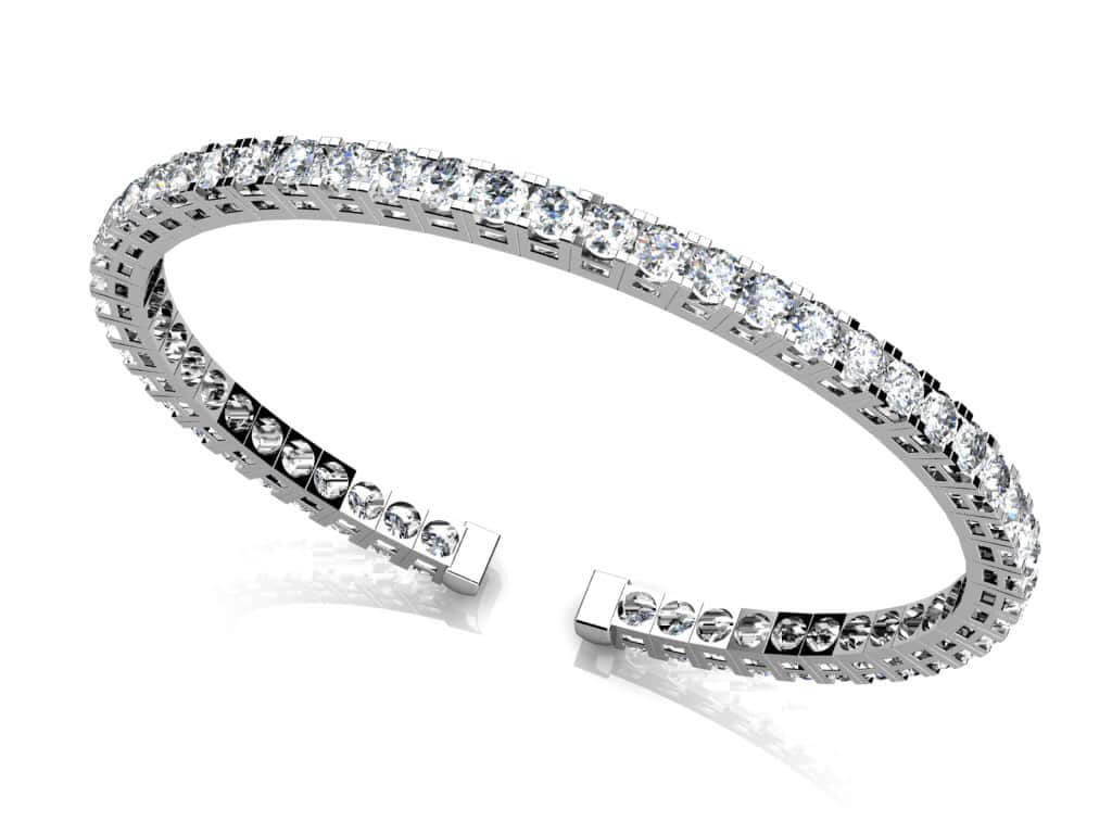 Classic Four Prong Flexible Diamond Bangle In White Gold Yellow Gold Or Platinum