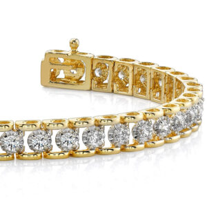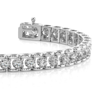 This is a beautiful, classic diamond bracelet. It’s available in 5 different sizes, and looks simply incredible from every angle. It is carefully crafted in your choice of gold or platinum, sizes range from half a carat to 4.08 carats of total diamond weight, featuring between 34 and 45 gleaming diamonds. This one’s sure to put a glimmer in anyone’s eye!