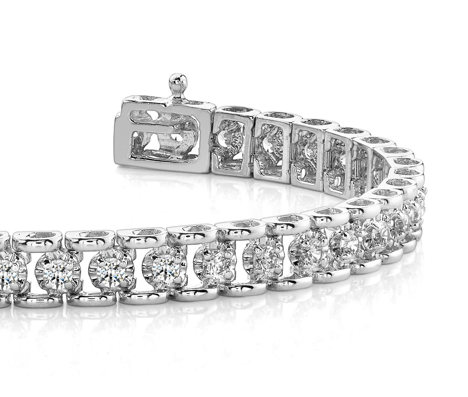 Classic Prong Illusion Set Diamond Tennis Bracelet In Platinum Or Gold
