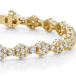 Do you own a cluster ring. Or perhaps you used to have one. When you look at them . they are not only beautiful . but symbolize togetherness, family and so much more. Imagine taking that timeless design . and making it into a bracelet! It’s available in two different sizes . either 168 diamonds, with a total carat weight of 4.64 carats, or 184 diamonds, weighing in at 4.21 carats. The heart-warming clusters, each featuring 7 diamonds, are linked with a diamond in between each one . the effect is truly unique & incredible! You’ll be proud to own this piece!
