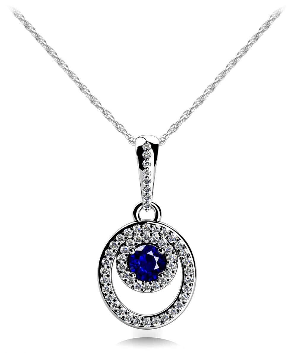 The combination of shapes and gemstones in this pendant necklace make it an incredibly interesting piece! The pendant has an outer circle full of round diamonds with a smaller center oval shape section, consisting of a pretty gemstone and smaller diamonds. Play designer when you choose the gemstone and select the metal type. Available in four different sizes ranging from half a carat to one and half carats of total weight. This is a true staple in any woman’s jewelry wardrobe!