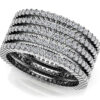 This stunning design features 3 rows of round diamonds in a unique concave design that go all the way around the ring! This piece is perfect if you want to make a statement and standout from the crowd. Build yours today with you preferred metal type and diamond quality.