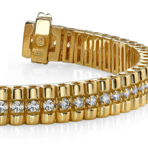 This bracelet features a continuous strand of diamonds to create a harmonious circle of strength. Each of the dazzling diamonds is carefully set between gold links for a substantial look guaranteed to impress.