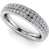 This extraordinary four row diamond ring can be worn as a wedding band or anniversary ring. With four rows of prong set round diamonds, this ring combines gorgeous diamond sparkle with impeccable quality and style. Choose your favorite metal type and quality of diamonds to custom build the ring of your dreams!