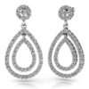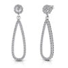 Looking for a pair of earrings that has it all. These diamond drop earrings feature an amazing 128-136 diamonds depending on the carat size you choose. The options are between 2 and 3 carats total diamond weight! Imagine these expertly designed earrings as a waterfall of diamonds set in gold or platinum. The vertical design begins with a round diamond encircled with smaller diamonds followed by three round, prong set stones linked together and end with a smashing duo of two hoops lined with many more stones. These are breathtaking designer earrings fit for any stylish woman!