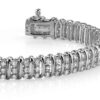 If you’re looking for Visual Interest . then look no further! This bracelet features incredible, round stones in your choice of diamonds or colored stones, set between a double stacked set of diamonds. And as if that weren’t enough, we can even craft this for you in two-tone metal, gold or platinum! It’s available in 5 sizes , now that’s Visual Interest!