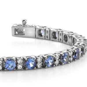 If you’re looking for Visual Interest . then look no further! This bracelet features incredible, round stones in your choice of diamonds or colored stones, set between a double stacked set of diamonds. And as if that weren’t enough, we can even craft this for you in two-tone metal, gold or platinum! It’s available in 5 sizes , now that’s Visual Interest!