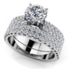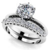 If you’re looking for some serious ‘bling’ . this is it! This incredible bridal set will have everyone asking if they can take a peek! Why. Because it’s simply brilliant, and features 70 incredible diamonds in total! Of course, we let you choose the size of the center stone, and whether you want this set crafted in gold or platinum, all you have to do is slip it on her finger & let the pride wash over you!