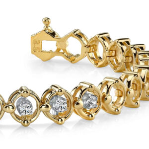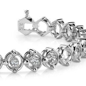This exceptional bracelet design has 6 or 7 diamonds set inside compass shaped links. Each diamond is held securely with four prongs. This bracelet will complement any outfit you choose to wear it with. Available in your choice of yellow gold, white gold or platinum and either the .28 ct., .33 ct., or the .60 ct. size. Sail away in one of these masterpieces today!