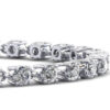 This bracelet has a secret… an artfully crafted crown that surrounds the diamonds and makes them appear much larger. The result is a diamond tennis bracelet with just as much sparkle as bracelets that have larger carat diamonds, at an affordable price. Customize with 14 or 18K yellow, rose or white gold or platinum.
