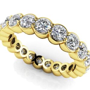 This diamond eternity band has a stunning row of perfectly matched diamonds set in a half bezel with prongs. Whether it is worn as a wedding band or anniversary ring, you’ll certainly make an impression! Customize this ring and make it your own by selecting your choice of metal, total diamond weight, and diamond quality.