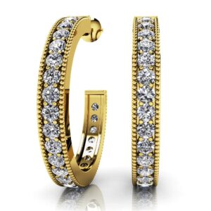 One, one and a half, or two carats total diamond weight. Decisions, decisions, decisions! These lovely oval hoop earrings glimmer from every angle, thanks to the lovely row of diamond embedded in each one! Then, you can choose gold or platinum, and our master craftsmen can make these absolutely perfectly for you! Sounds like a smart decision to us.