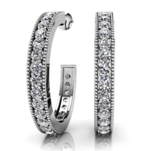 One, one and a half, or two carats total diamond weight. Decisions, decisions, decisions! These lovely oval hoop earrings glimmer from every angle, thanks to the lovely row of diamond embedded in each one! Then, you can choose gold or platinum, and our master craftsmen can make these absolutely perfectly for you! Sounds like a smart decision to us.