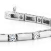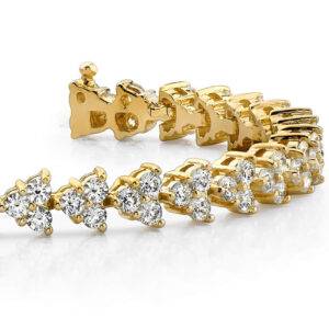 An eye-popping design, this incredible diamond bracelet features the perfect trinity of prong-set diamonds, in sets of 3. The point of each pyramid meets the middle of the next one, continuing all around this unique piece.
