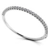 Our Divinely Dazzling bangle bracelet is a modern design that seamlessly blends four prongs into the setting. This specially crafted design accentuates the round diamonds by making them appear larger and more dazzling. Design yours in a choice of 14 or 18kt yellow, rose or white gold or platinum.