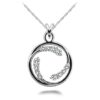 A dazzling center diamond is the star of this show, but believe us when we say that the supporting cast should all get awards here too! The lovely pendant center stone is surrounded by a circle of smaller diamonds. What makes this pendant special is the double diamond drop design, so the slider is a fabulous diamond, and there’s another diamond directly below it, which links to the pendant . truly a gem! Available in 3 different combinations, in either .34, .78 or a fabulous 1 carat total diamond weight, this is a very special piece and a very smart choice!