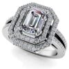 Elegance and style are brought together in this double halo cushion cut engagement ring. Surrounded by dual bands of round diamonds, highlighting a cushion cut center stone, this engagement ring showcases a sophisticated design. Customize this engagement ring to your choice of metal type, color, quality and total carat weight.
