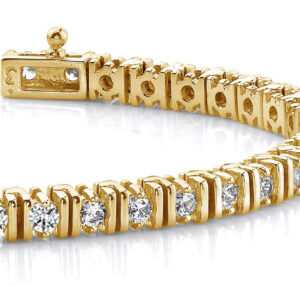 These prong-set diamonds really appear to float between the lovely metal links, and you get to choose what they’re set between . gold or platinum! Available in 3 sizes, ranging from total diamond weights of 2, 3 or 4 carats, so we know you’ll find the one that’s perfect for your style.and your pocketbook. Go ahead..you’re worth it!