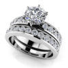 If your love is a force to be reckoned with, then this bridal set is the perfect choice! It’s a solid, substantial set, featuring two rows of diamonds on the band, and another two rows on the engagement ring. Of course, the center stone is the star of the show. It’s set perfectly in the classic 6 prong setting. This combination is available in either gold or platinum, and ranges from 1.34 to 2.34 carats total diamond weight…now that’s something special . just like the love you feel for each other.