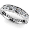 If you are looking for a quality eternity ring, this beautiful style is crafted with impeccable standards for design. There are two rows of beautiful brilliant round diamonds prong set around the ring. The addition of the second row gives it extra sparkle. Choose from white gold, yellow gold, or platinum and several diamond qualities to create the ring of your dreams!