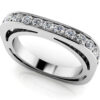 This eternity band makes a statement with its square design and double row of diamonds. It is a unique look that is perfect for the elegant woman. It can be engraved to include a personal message to remind her of the love you share. Select your preferred metal type and diamond quality to personalize the perfect piece.