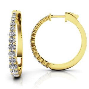 These unique and elegant diamond hoop earrings feature an icy row of round diamonds that taper towards the top. Measuring .90 inches in height (23.5 mm). Design yours in either a gold or platinum setting.