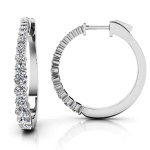 These unique and elegant diamond hoop earrings feature an icy row of round diamonds that taper towards the top. Measuring .90 inches in height (23.5 mm). Design yours in either a gold or platinum setting.