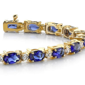 Elegant Diamond And Oval Colored Stone Bracelet Available In Platinum Or Gold