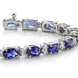 Elegant Diamond And Oval Colored Stone Bracelet Available In Platinum Or Gold