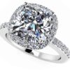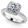 Showcase your love for her with this elegant and modern engagement ring. Brilliant round diamonds form the perfect halo around the sparkling cushion cut center diamond. The stunning gold or platinum band is the perfect setting to complete the look. Choose yours today . available in several carat weights in a gold or platinum setting.