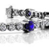 Highlight your elegant style with a touch of sophistication on your wrist. Two distinct round diamond sizes are set among a unique prong design to create this stylish bracelet. This piece adds a bit of color to add to your jewelry collection.