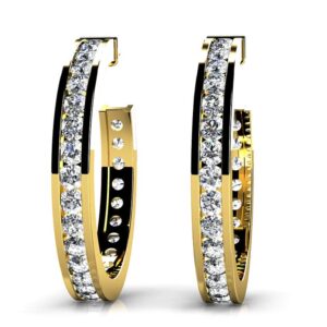 Elongated Diamond Round Shaped Hoop Earrings
