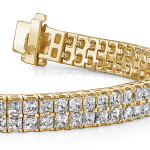 Diamonds sparkle from all directions in this beautiful bracelet design. A flawless four prong setting holds each princess cut diamonds secure in this two row diamond tennis bracelet. The setting is flat on both sides with the prongs sitting flush with the diamonds. There is virtually no space between the links so you end up seeing more of the magnificent, sparkly diamonds all the way around your wrist! Customize this bracelet based on your favorite metal type, and choose from sizes ranging from 8.40 total diamond carat weight to an outstanding 14.88 total diamond carat weight. It’s the perfect accessory to wear to any special event!