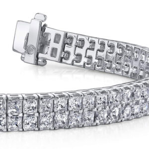 Diamonds sparkle from all directions in this beautiful bracelet design. A flawless four prong setting holds each princess cut diamonds secure in this two row diamond tennis bracelet. The setting is flat on both sides with the prongs sitting flush with the diamonds. There is virtually no space between the links so you end up seeing more of the magnificent, sparkly diamonds all the way around your wrist! Customize this bracelet based on your favorite metal type, and choose from sizes ranging from 8.40 total diamond carat weight to an outstanding 14.88 total diamond carat weight. It’s the perfect accessory to wear to any special event!