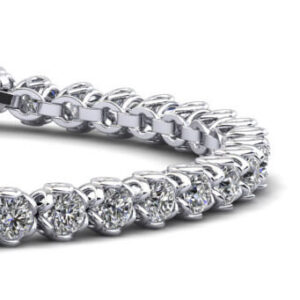 The settings on this beautifully designed tennis bracelet give the appearance of leaves gently reaching up and embracing its diamonds. All of our tennis bracelets are made with a strong, durable under-clasp for a secure fit. The Nature’s Essence Diamond Tennis Bracelet is available in 14 or 18kt yellow, rose or white gold, or platinum.
