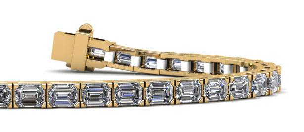 Emerald cut diamonds, often favored by celebrities, are absolutely luxurious. Our Evening Emerald Tennis Bracelet has beautifully cut diamonds in block style settings. Custom design this beautiful bracelet with the diamond size of your choice, and by selecting 14 or 18kt yellow, rose or white gold or platinum.