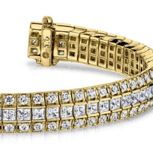 The stunning bracelet is the perfect combination of class and elegance. The prong and channel setting embraces over 150 round and princess cut diamonds that will astonish you. Customize this elegant bracelet by selecting your metal type of either White Gold, Yellow Gold or Platinum. This show stopper will impress your friends and family for years to come!
