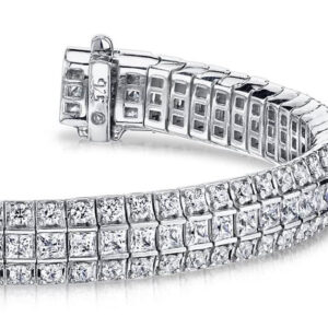 The stunning bracelet is the perfect combination of class and elegance. The prong and channel setting embraces over 150 round and princess cut diamonds that will astonish you. Customize this elegant bracelet by selecting your metal type of either White Gold, Yellow Gold or Platinum. This show stopper will impress your friends and family for years to come!