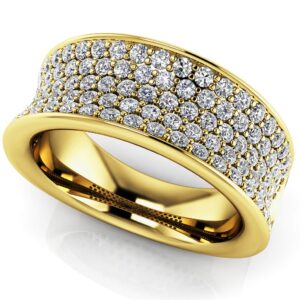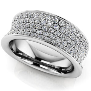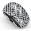 This gorgeous ring features 5 rows of eye catching diamonds. The stones are set within a curved design that gives it a very unique and spectacular look. It is the perfect way to surprise her for an anniversary or special occasion. Make this design your own with your choice of metal type and diamond quality.