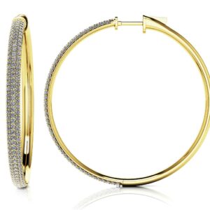 Perfect for a look of elegant glamour, these stunning triple row pave set hoop earrings will light up the room. Create your perfect pair in three available carat weights in your choice of 14k or 18k gold or platinum and easily fasten with our secure push button closure.