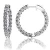 Crafted in your choice of 14k or 18k gold or platinum these diamond inside out huggie earrings are a perfect way to complete a look. Round diamonds are prong set to charm with their endless sparkle. Finished with our easy to use and secure push button closure.