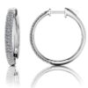 Radiate a beautiful sparkle of shimmering diamonds, with these huggie hoop earrings. Crafted in 14k or 18k gold or platinum, 3 rounds of round diamonds are pave set for a twinkling glow. Features our easy to use and secure push button closure.