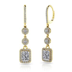 These statement earrings feature round and emerald cut diamonds framed beautifully with smaller round diamonds. These earrings are the perfect combination of class and beauty. Customize your earrings by selecting the metal type and diamond quality.
